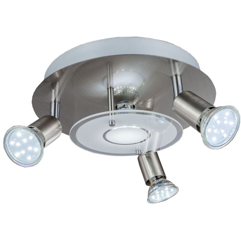 Ad ogni accensione della lampada l'ambiente circostante verrà avvolto da una luce calda (3000 Kelvin) e intensa (250 Lumen) Un faretto è fisso, gli altri tre sono orientabili in modo da poter distribuire la luce come si preferisce L'alta qualità e la forma moderna del lampadario permettono di inserirlo in qualsiasi stanza della casa, ad esempio in cucina o in sala, oppure in ufficio 1 plafoniera dal diametro di 25 cm con 4 faretti e 4 lampadine LED GU10 incluse. Le lampadine hanno lunga durata, in media 20.000 ore, e sono sostituibili Il nostro servizio clienti è unico come il design moderno delle nostre lampade - qualità che vi convincerà, designed in Germany