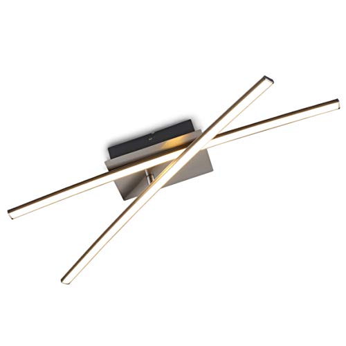 B.K.Licht Plafoniera LED da soffitto, LED integrati luce calda 3000K, 1200Lm, lungo 58.5cm, Lampadario moderno minimalista per interni, camera da letto soggiorno cucina, color nickel opaco IP20