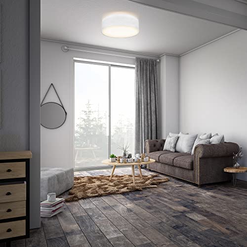 B.K.Licht Plafoniera in tessuto bianco, attacco per lampadina E27 non inclusa, Lampada da soffitto diametro 30cm, Lampadario moderno per salotto o camera da letto, IP20