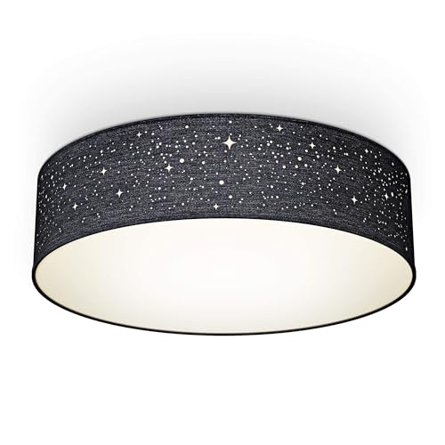 B.K.Licht Plafoniera in tessuto nero con effetto a stelline, attacco per 2 lampadine E27 non incluse, Lampada da soffitto rotonda diametro 38cm, Lampadario moderno per salotto o camera da letto IP20