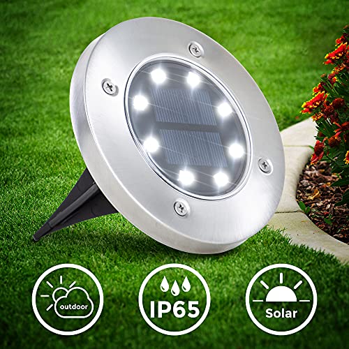 B.K.Licht Luci LED solari da giardino da terra, set di 8, Ø119 mm, impermeabili IP65, accensione/spegnimento automatici, Lampade per esterni a energia solare