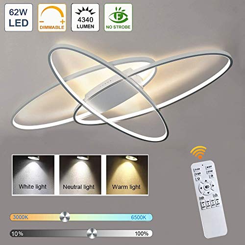 Lichtsse LED Dimmerabile Plafoniera 62W 4340LM Lampada da salotto moderna Ellisse Annulus Designer Lampada da soffitto decorativa con telecomando Cucina Métal Acrilica Camera da Letto Bianca Lampadari