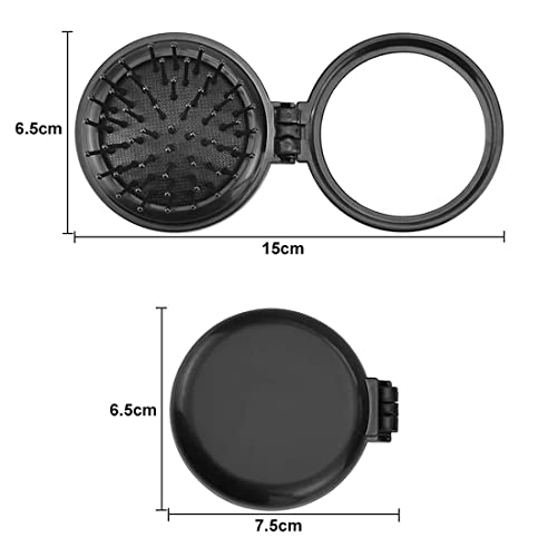 LICHUAN 2 Pezzi Mini Spazzola per Capelli Pieghevoli con Specchio, Spazzola Rotonda Pieghevole Portatile (Nero/Bianco)