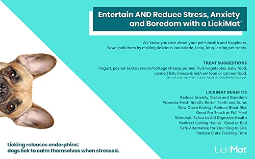 Riduce l'ansia, la noia e il comportamento distruttivo: il tappetino per cani LickiMat's aiuta a calmare e calmare il vostro animale domestico promuovendo leccare e endorfine. Ideale per periodi stressanti come temporali e fuochi d'artificio.