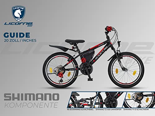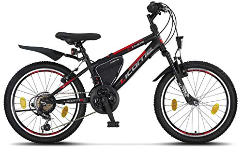 Licorne - Mountain bike per bambini, uomini e donne, con cambio a 21 marce, Bambini, nero/rosso/grigio., 20