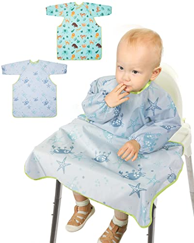 Lictin 2 Pcs Babero con Mangas Impermeable- Babero de Manga Larga con Escote Ajustable,Babero de Manga Larga para Trona Bebés 6 a 24 Meses,Unisex