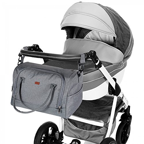 Lictin - Borsa fasciatoio per bambini, impermeabile, con imbottitura per pannolini, tasche isolate, con 2 ganci per passeggino, colore: grigio