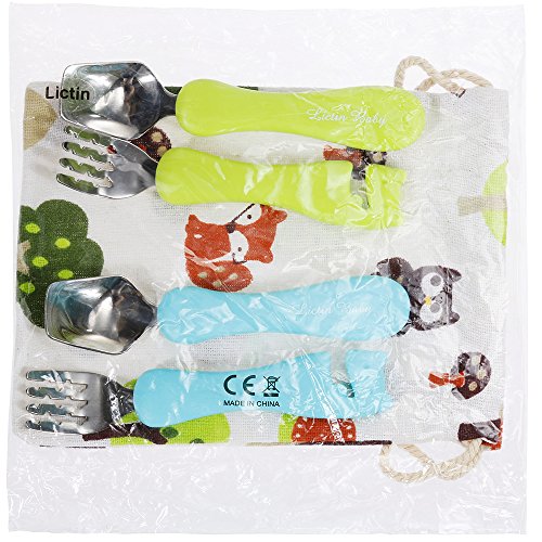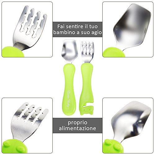 Lictin Cucchiaio e Forchetti per neonati Set 2 Forme arrotondate sicurezza