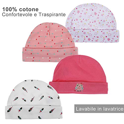Lictin Guanti Neonato Cappellini Neonata Cotone - 4 Paia AntiGraffio Guanti per Neonata e 4 Pezzi Berrettini per Neonata 1-6 Mesi,100% Cotone