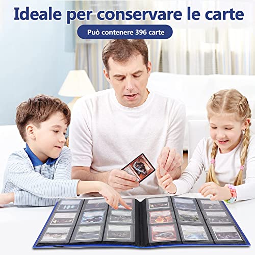 Lictin Raccoglitore Carte da Collezione di Giochi - Album Trasparente Impermeabile con 396 Tasche per Carte da Gioco, Card Binder con Guscio e Cinturino Neri, 22 Fogli, 9 Griglie per Pagina(Blu)
