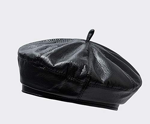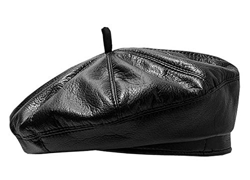 Licus - Berretto da Donna in Pelle Sintetica PU, Stile Francese Nero Medium