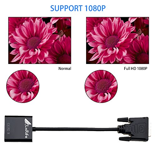 DVI a VGA, Lidlife E0309 DVI-D-Link 24 + 1 maschio alla femmina del VGA video digitale via cavo oro placcato 1080P per il gioco, DVD, computer portatile, HDTV e proiettore