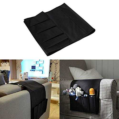 Great sturdy 3 pockets organizer for remote controllers, eye glasses, mobile phones organized and easily accessible with expandable band for magazine and newspapers