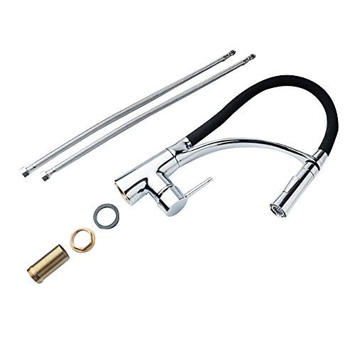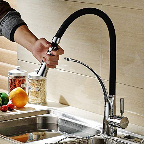 Design popolare: design commerciale estraibile - facile da pulire il lavandino senza punti ciechi. Il design del beccuccio ad arco alto offre più spazio per pentole/padelle, la rotazione a 360 gradi offre spazio superiore per una varietà di attività del lavandino.