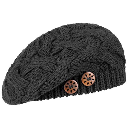 LIERYS Berretto Basco a Maglia Jil con Bottoni Donna - Made in Germany Beanie Lavorato da Autunno/Inverno - Taglia Unica Nero
