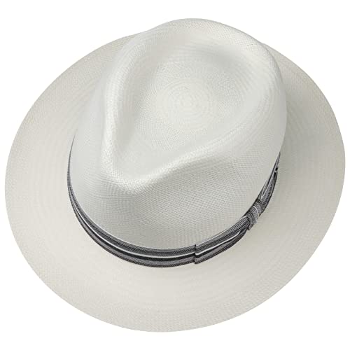 LIERYS Cappello Panama Veliano Fedora Uomo - Made in Italy da Sole Paglia Estivo con Fodera Primavera/Estate - L (58-59 cm) Bianco