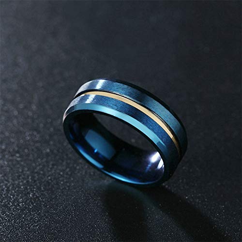 Lieson Anelli Acciaio Inossidabile Uomo, Anello Nuziale Uomo Opaco Rotondo Larga 8MM Blu Anelli con Misura 15