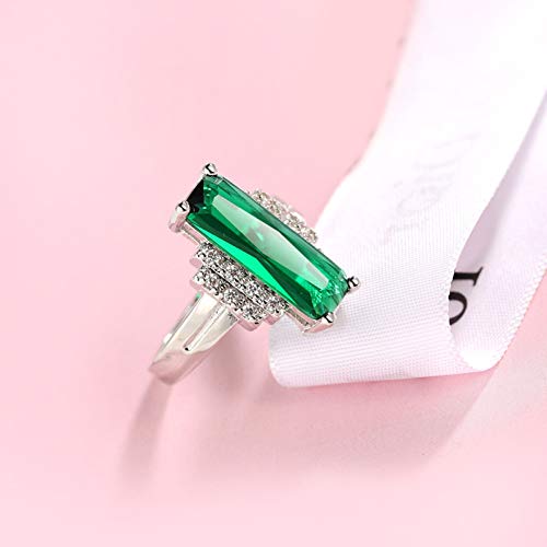 Lieson Anello Matrimonio Donna, Anelli Donna Fidanzamento Oro Bianco 18K Placcato Anello con Zirconi Verde Baguette Anello Semplice Classico Anello Donna Misura 12