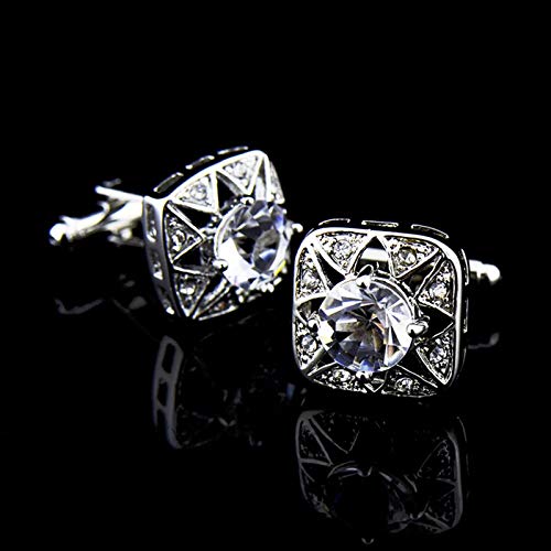 Lieson Gemelli Camicia Uomo Personalizzati, Gemelli da Smoking Gemelli Camicia Argento Bianco Gemelli Uomo Zirconi Gemelli Camicia Uomo Quadrati per Matrimonio Commercio Regalo