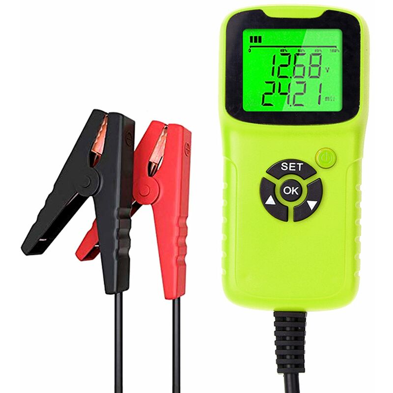 Caratteristiche: Il tester della batteria viene utilizzato per la batteria di avviamento al piombo, nonché per controllare le seguenti condizioni della batteria, avviamento, carica e ricarica. Con un ottimo design, facile da usare, lettura precisa, funzioni complete, questo tester fornisce le letture su un ampio schermo LCD e indizi di suoni e luci durante i test. Utilizza il metodo Kelvin a 4 fili per completare la raccolta di una complicata serie di dati per calcolare tutti i dati di prova con un circuito integrato accurato e un processore digitale migliorato. Inoltre, alcuni miglioramenti del circuito, tra cui protezione da inversione di polarità, protezione da sovratensione, rilevamento di cavi allentati, garantiscono sicurezza e praticità durante i test. È quindi lo strumento migliore nei settori della vendita di batterie, della riparazione di veicoli e dell'ispezione della batteria nel sistema di equipaggiamento associato alla batteria di avviamento al piombo. Specifiche