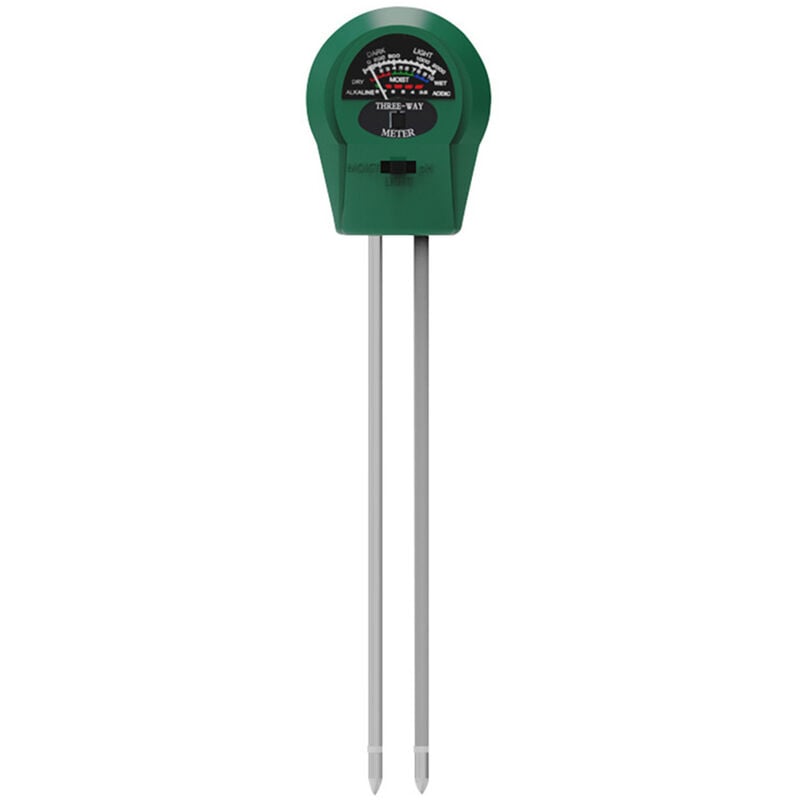 Questo è uno strumento facile da usare per testare la luce/ PH/ umidità del suolo. È preciso e veloce, può essere ampiamente utilizzato in serra, fattoria, giardino, frutteto, ecc. Nessuna batteria richiesta, che è a risparmio energetico ed ecologico. Nota: 1. Inumidire il terreno con acqua prima del test;