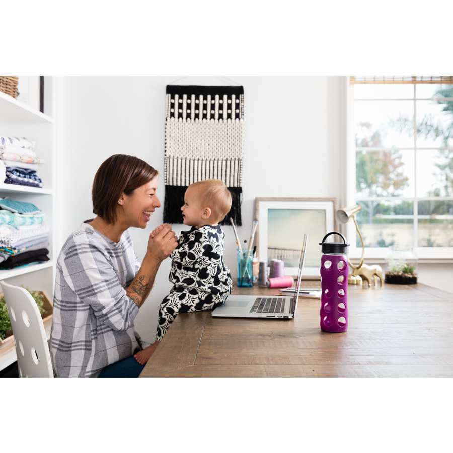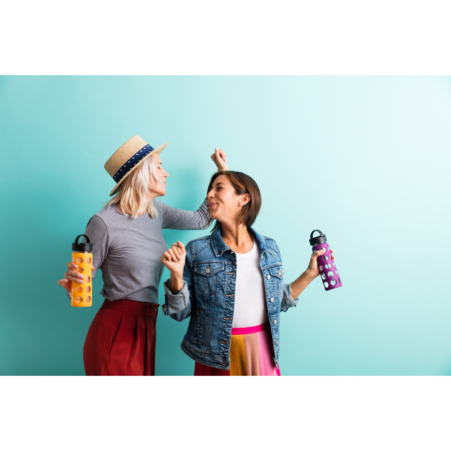 L'alternativa sana alle bottiglie di plastica - Le bottiglie di vetro evitano il più grande pericolo rappresentato dalle bottiglie di plastica: non contengono bisfenolo A (BPA). Le bevande calde in particolare lavano il BPA dal policarbonato usato per le bottiglie di plastica. Il bisfenolo A entra nel cibo, compresi gli alimenti per bambini, e può quindi causare cambiamenti nel materiale genetico. Negli adulti, il BPA potrebbe anche aumentare il rischio di malattie cardiovascolari e diabete. Le bottiglie di vetro non contengono questa sostanza e sono quindi l'alternativa più sana per l'uomo. Igienico e innocuo - Il vetro borosilicato resistente alle temperature delle bottiglie di vetro Lifefactory offre una soluzione igienica e innocua per genitori e bambini. Le bottiglie possono essere utilizzate per trasportare acqua, tè freddo, latte e tutte le altre bevande per il viaggio, lo sport e il tempo libero. Il vetro non nocivo rende inoltre le bottiglie Lifefactory perfette per la pappa. Bottiglia: Materiale: vetro borosilicato resistente alle alte temperature Senza BPA e BPS Senza gusto e lavabile in lavastoviglie Capacità: 475 ml Coperchio: Polipropilene senza ftalati (PP#5) Senza PBA e BPS Igienico e sicuro Anello di chiusura in silicone medicalmente certificato Rivestimento in silicone: Colore: viola Realizzato in silicone medicalmente certificato Senza BPA e BPS Fornisce una buona presa e protegge il vetro Età consigliata: 8 anni
