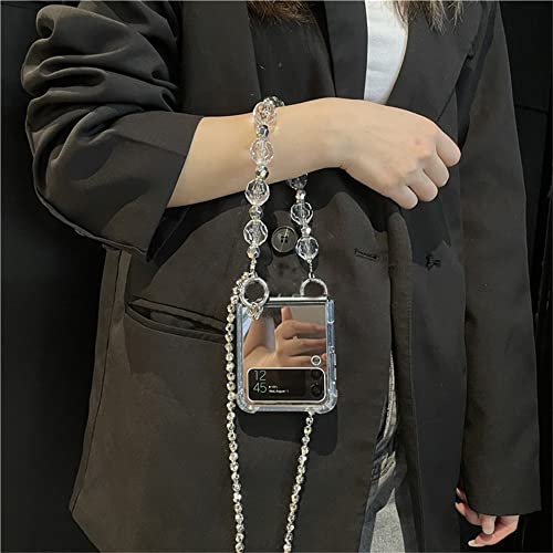 LIFEKA Lusso Coreano Strass Perline Bracciale Catena Specchio Custodia per Samsung Galaxy Z Flip 3 5G Z Flip3 Zflip3 Zflip4 Flip4 Cover,A,per Z Flip 3 5G