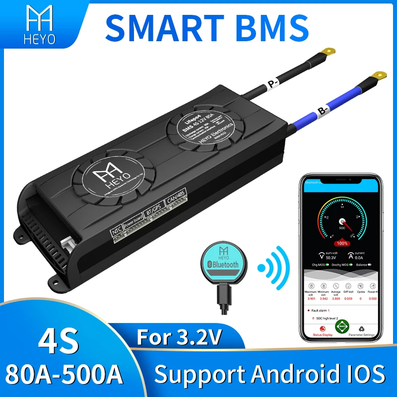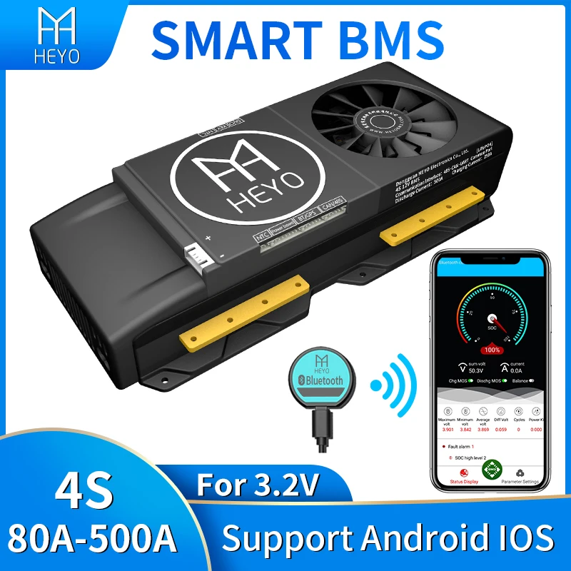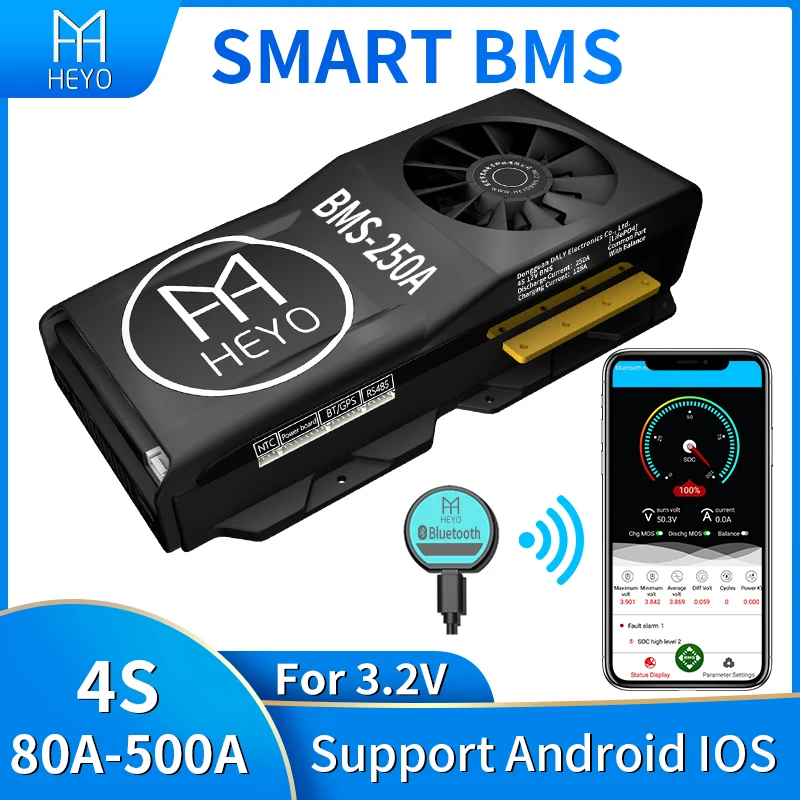LiFepo4 Battery 4S Smart BMS 12V 80A 100A 120A 150A 200A Bluetooth 485 to USB device NTC UART software With Fan balancer