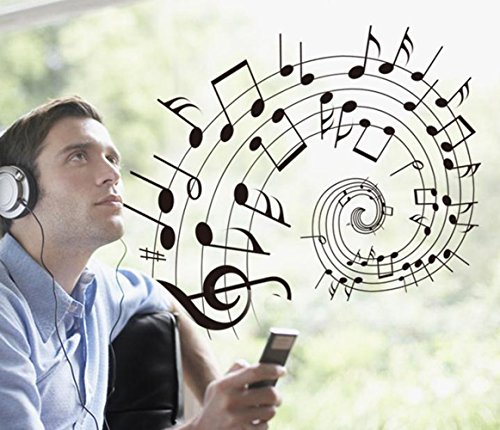 Lifeupmall Notes Staff - Adesivi da parete in vinile con scritta in lingua inglese Arts Lettering Guitar Musical Instrument Rock Vinyl Wall Stickers per cameretta, sala musica