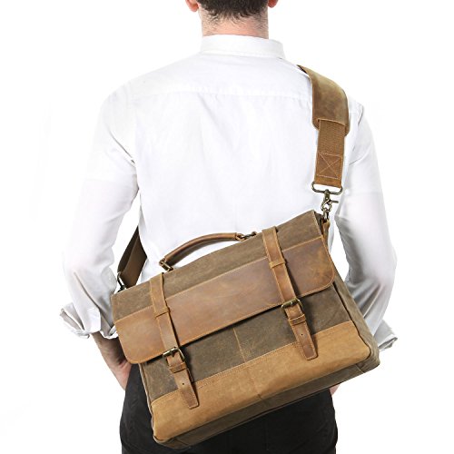 Lifewit 15.6" Borsa a Spalla a Tracolla per Laptop Vintage in Vera Pelle e Tela