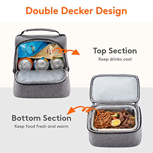 Lifewit Borsa Termica Manutenzione di Freddo e Caldo Porta Pranzo Cibo Alimentazione Lunch Box da 7Litri per Campeggio Lavoro Scuola con Doppia Sezione, Grigio