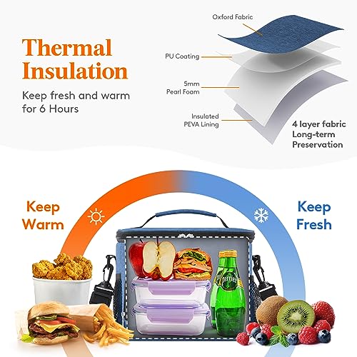 Lifewit Borsa Termica Porta Pranzo,Borsa Frigo Riutilizzabile per Uomo Donna, Borsa Porta Pranzo Portatile Congelabile a Prova di Perdite con Tracolla Regolabile per Adulti per Lavoro, Blu scuro 9L