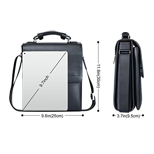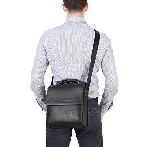 Lifewit Borsa a Tracolla in Pelle, Borsa Messenger con Multitasche per 9'' iPad/Tablet/Kindle, Borse a Spalla Resistente all'Acqua per Lavoro/Scuola/all'Aperto, Nero (Borsa A Tracolla In Pelle2)
