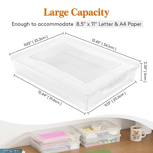 Lifewit Confezione da 4 Scatole multiuso in plastica con coperchio a scatto, Conservazione carta A4, Organizzazione classe per materiali artigianali, file, riviste