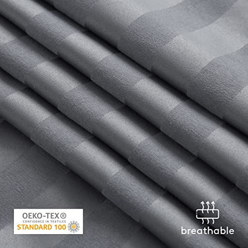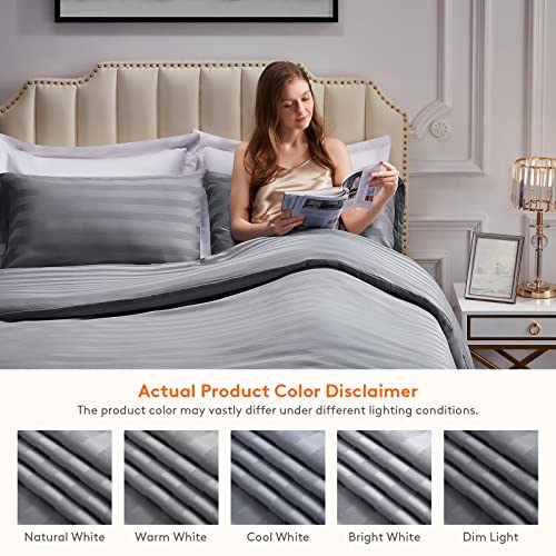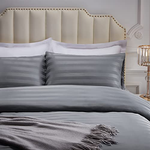 Lifewit Set Copripiumino King Size, Morbido Copripiumino Double-face a Strisce di Raso con 2 Federe, 260 x 220 cm, Grigio