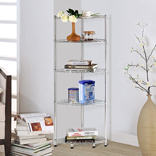 Lifewit Scaffalatura Metalica da Angolo Regolabile in Altezza Scaffale Angolare da Bagno Salotto Camera da Letto Cucina Free Standing 5 Ripiani