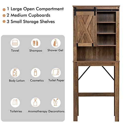 LIFEZEAL Mobile su WC, Scaffale sopra WC con Porta Scorrevole con 3 Ripiani Aperti, Organizer Bagno Salvaspazio,Stabile e Antidumping, Stile Moderno, 68 x 22 x 171 cm, Marrone