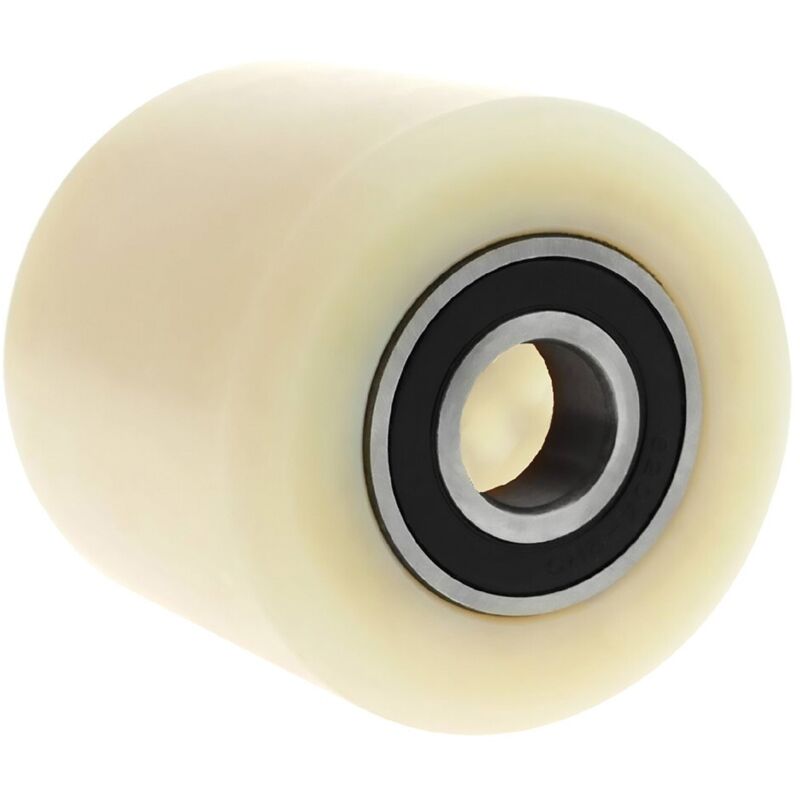 Rivestito in nylon. Mozzo su cuscinetti a sfera schermati. Adatto per transpallet serie 'GS-Basic'.. ricambio mm 82 x 60. Prezzo inteso per: 1 PZ