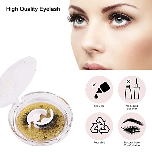 Lifuncren 2 Paia Ciglia Finte Autoadesive 3D Ciglia Finte Naturali Riutilizzabili Nessuna Senza Colla e di Eyeliner per Ciglia Facili da Indossare e Antiscivolo Impermeabili Ciglia Finte Cat Eye (W02)