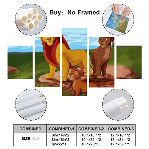 LIFUQING Il Re Leone multipannello 5 pannelli pittura decorativa moderna moderna decorazione per soggiorno decorazioni per quadri murali casa stampe d'arte la moderna decorazione -senza cornice