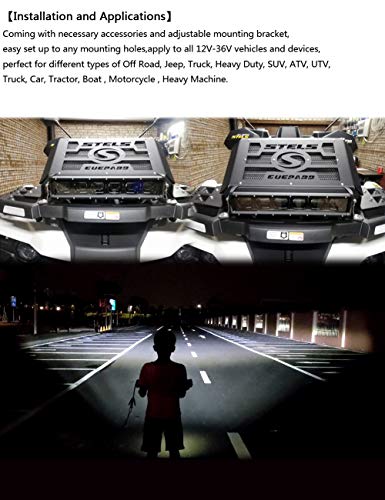 【BETTER QUALITY】 It works on low currents,but brightness is unabated. energy-saving, Led itself also benefit from a gentle run,Quick cooling aluminum alloy heat sinks and high-quality heat conduction silicone gel can effectively extend the lifespan of the light bar to over 50,000 hours. IP68 Waterproof Rate, waterproof up to 1 meter of water for 30 minutes and effectively dustproof. The stainless mounting brackets are rustproof and anticorrosive.