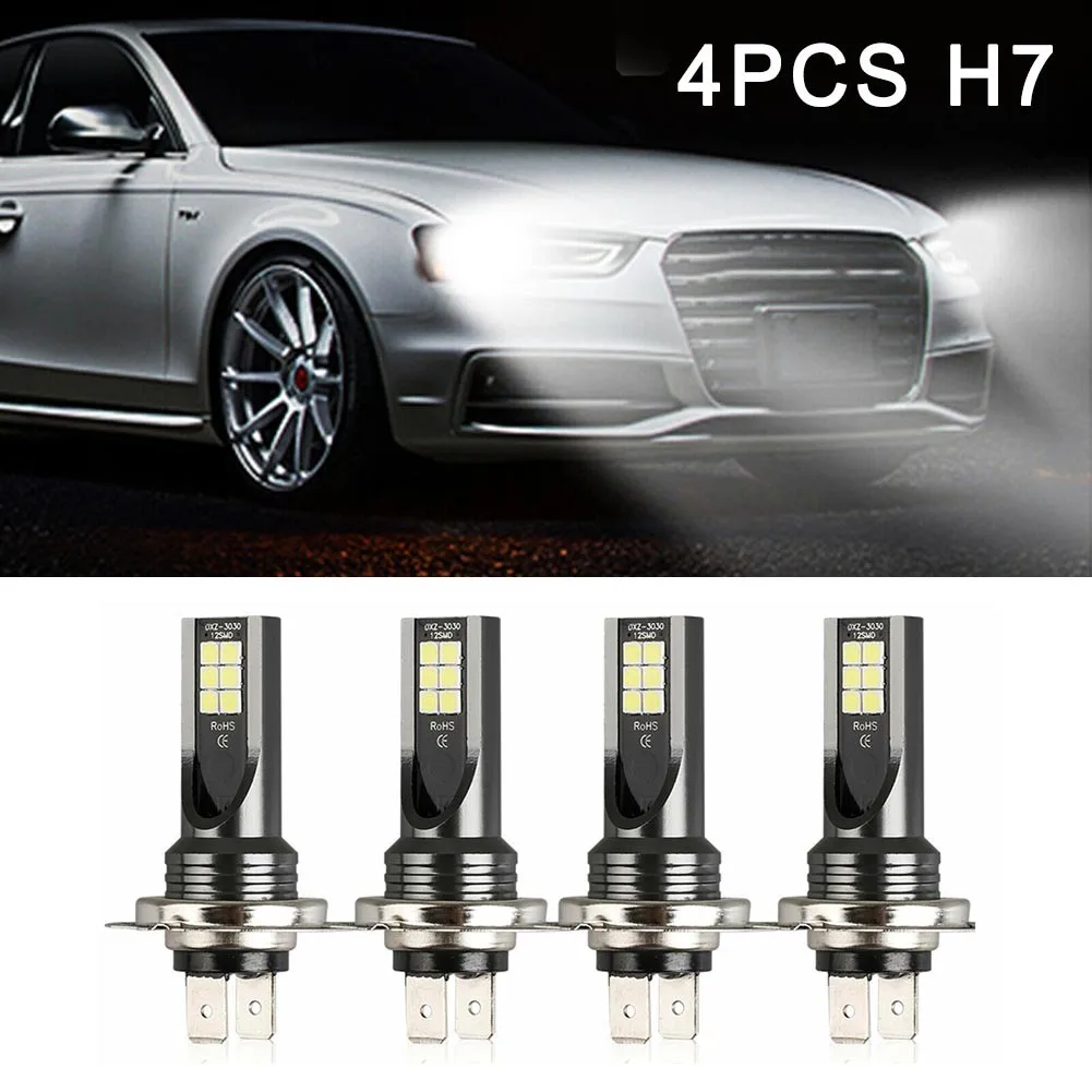 4Pcs H7 LED Light 6500K -7500K Aluminum Alloy Headlight Kit High Low Beam