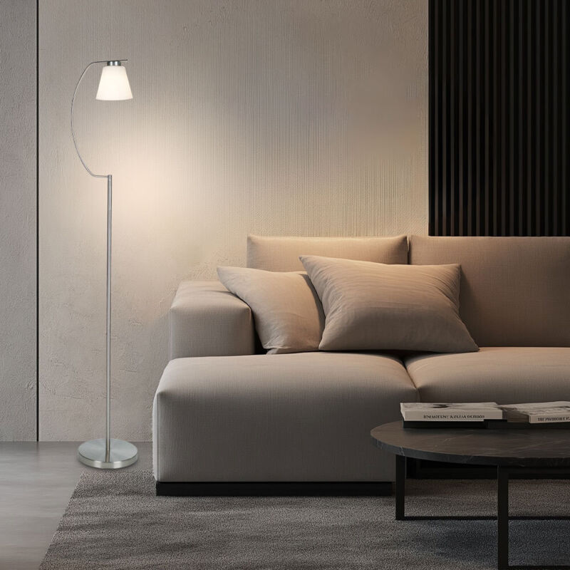 DESCRIZIONE .Piantana per ambienti interni. .Struttura in metallo cromato. .Diffusore in vetro Opaco. .Lampada Led Inclusa DIMENSIONI EFFETTIVE .Dim. H = 1450 mm, 230 350