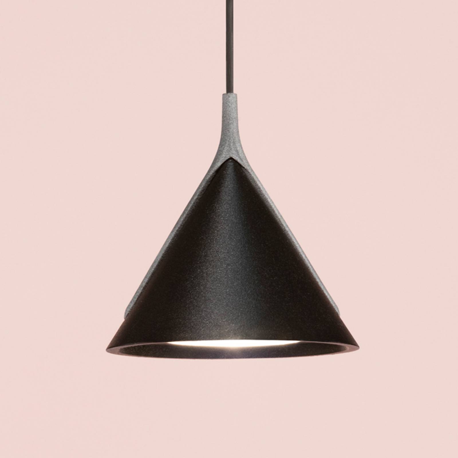Luce a sospensione a LED Jewel Mono Minimalismo e design - la lampada a sospensione di design a LED Jewel Mono combina entrambi. Il semplice paralume, che è a forma di cono e fatto di alluminio, è tenuto qui con uno stretto attacco su entrambi i lati, che collega il paralume con la sospensione. I LED integrati e dimmerabili all'interno forniscono anche un'alta resa luminosa e una piacevole luce bianca calda. Il paralume in metallo riflette la sorgente luminosa completamente verso il basso, creando un'incantevole illuminazione d'accento. Il design proviene dallo studio di design spagnolo Yonoh, fondato da Clara del Portillo e Alex Selma nel 2006. Con grande attenzione ai dettagli, creano arredi di nuova interpretazione come poltrone, lampade, tavoli e molto altro. Il team di designer ha già ricevuto molti premi internazionali. Il concetto di Jewel Mono rappresenta il trasferimento di esprimere cose complicate in modo semplice.