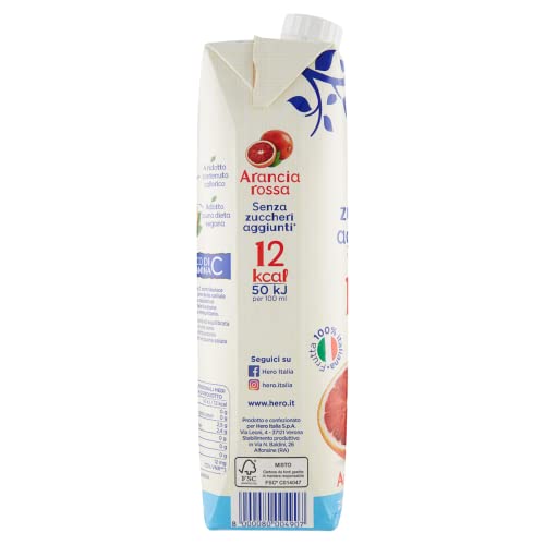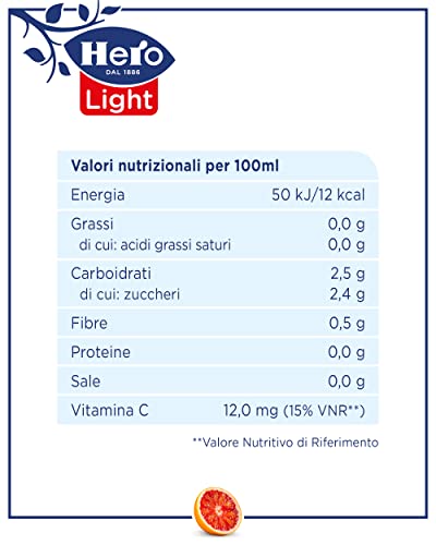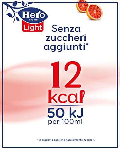 Hero Light Bevanda Di Frutta Gusto Arancia Rossa, 8 Bottiglie Da 1L, Succo Di Frutta Con Pochissime Calorie Per Porzione, Senza Zuccheri Aggiunti, Zero Conservanti, Zero Coloranti