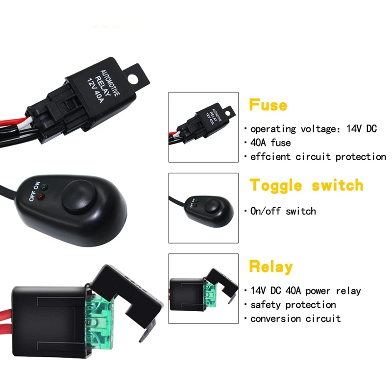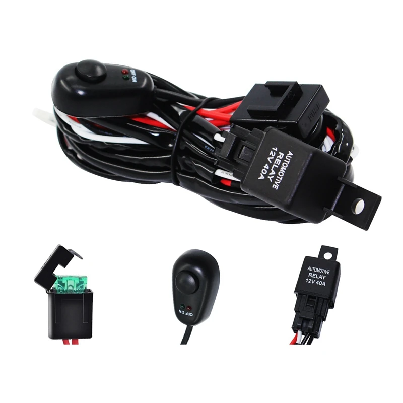 Led Work Light Bar Cable Car Auto Off Road Driving Fog Light Wiring Loom Harness Kit With On/Off Switch 40A Dc12V One Drag Two