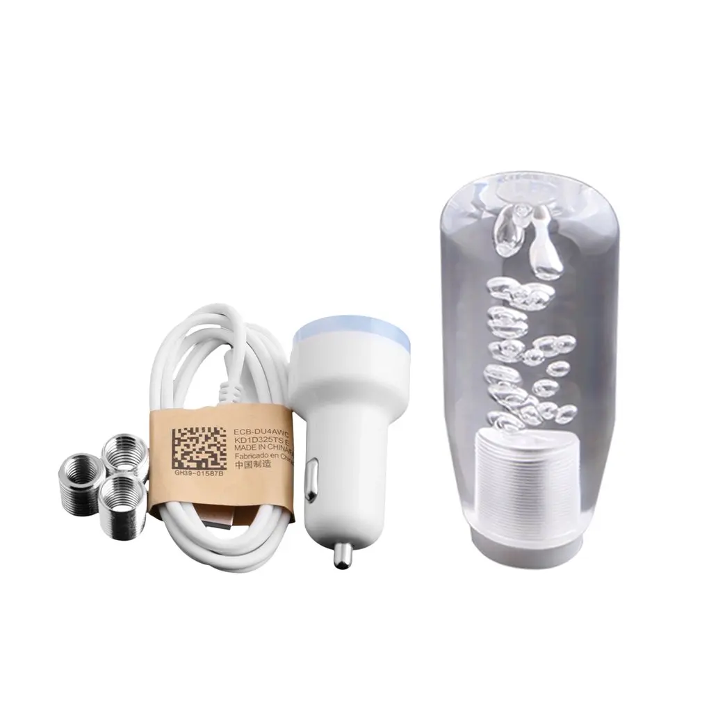 LED Light Color Changing Crystal Bubble Car Gear Shifter Knob Stylish Manual Shifter Stick With 2 USB Interface Charger