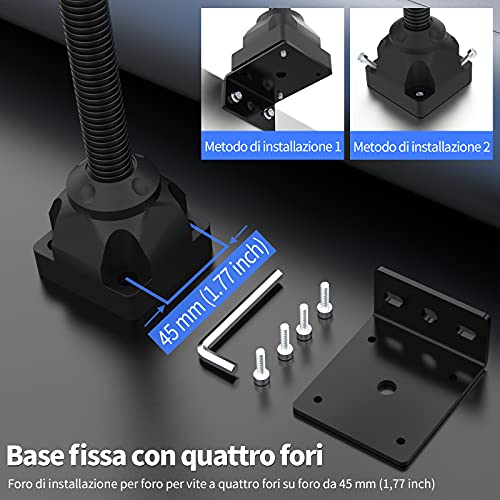 Metodo di installazione sicuro e affidabile: ci sono quattro fori per le viti nella base della lampada da lavoro. Abbiamo preparato per te quattro viti e una piastra di ferro a forma di L, in modo che la lampada possa essere installata saldamente e stabilmente. Possono essere combinati in una varietà di metodi di installazione diversi, adatti a tutte le posizioni della macchina.