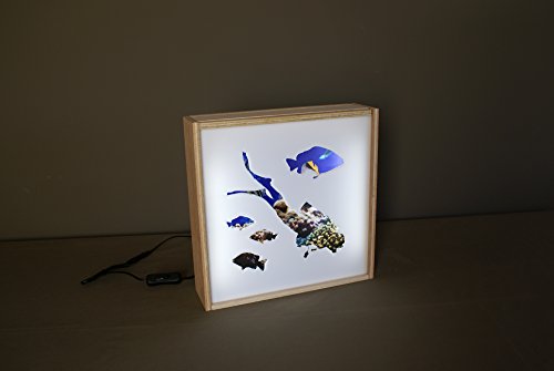 LIGHT THE BOX! Lampada LED Quadro Luminoso in Legno e Plexiglass, Perfetta per Decorare la Camera da Letto. Decorazione per Casa, Negozi, Ristoranti. Ottima idea Regalo - MARE - Bianco - 30x30X8cm (Plongeur / Fondali Marini)