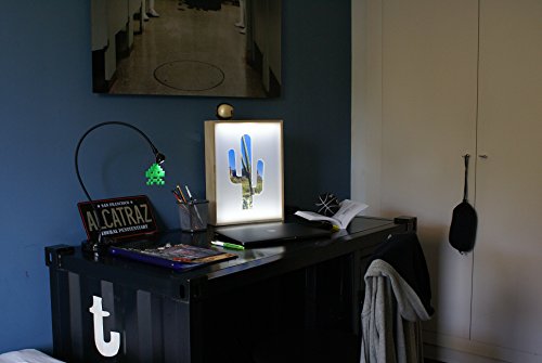 Light the Box! Lampada LED Quadro Luminoso in Legno e Plexiglass, perfetta per decorare la camera da letto. Decorazione per Casa, Negozi, Ristoranti. Ottima idea Regalo - NATURA - Bianco - 40x30x8cm (Cactus / Cactus)